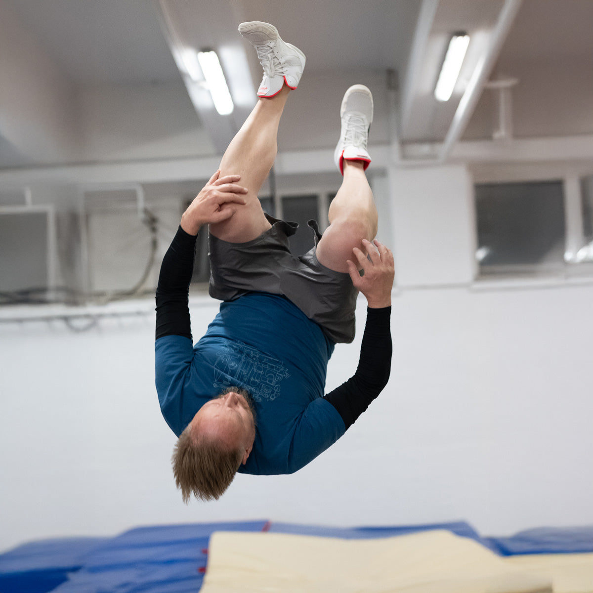 - Eteenpäin voltteja (turvallisesti patjoille vaiheittain)